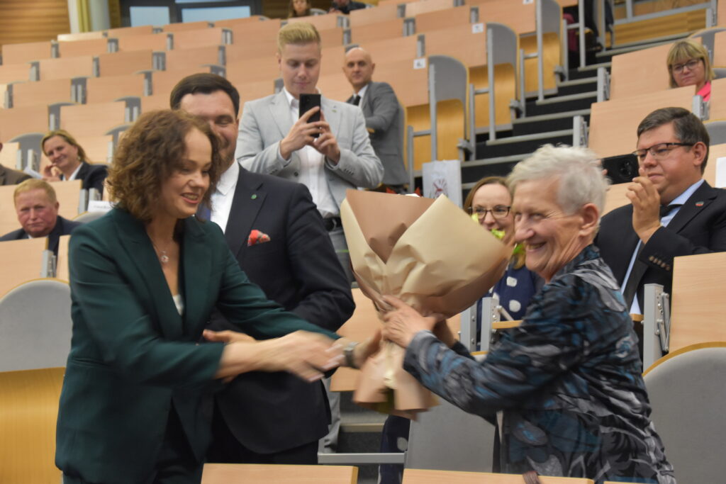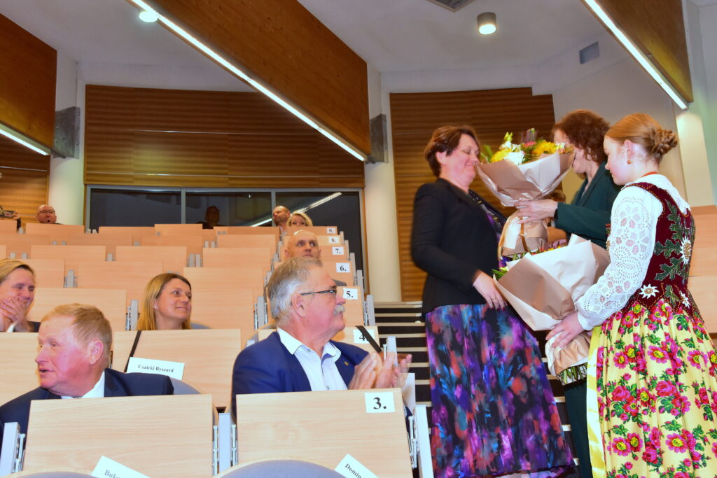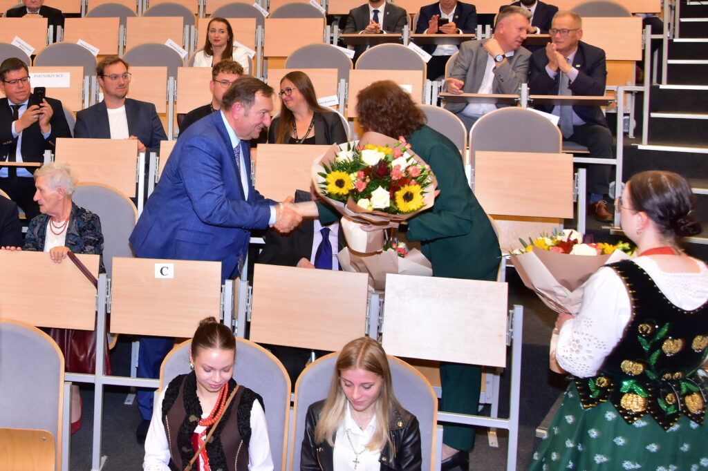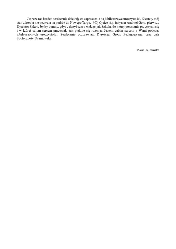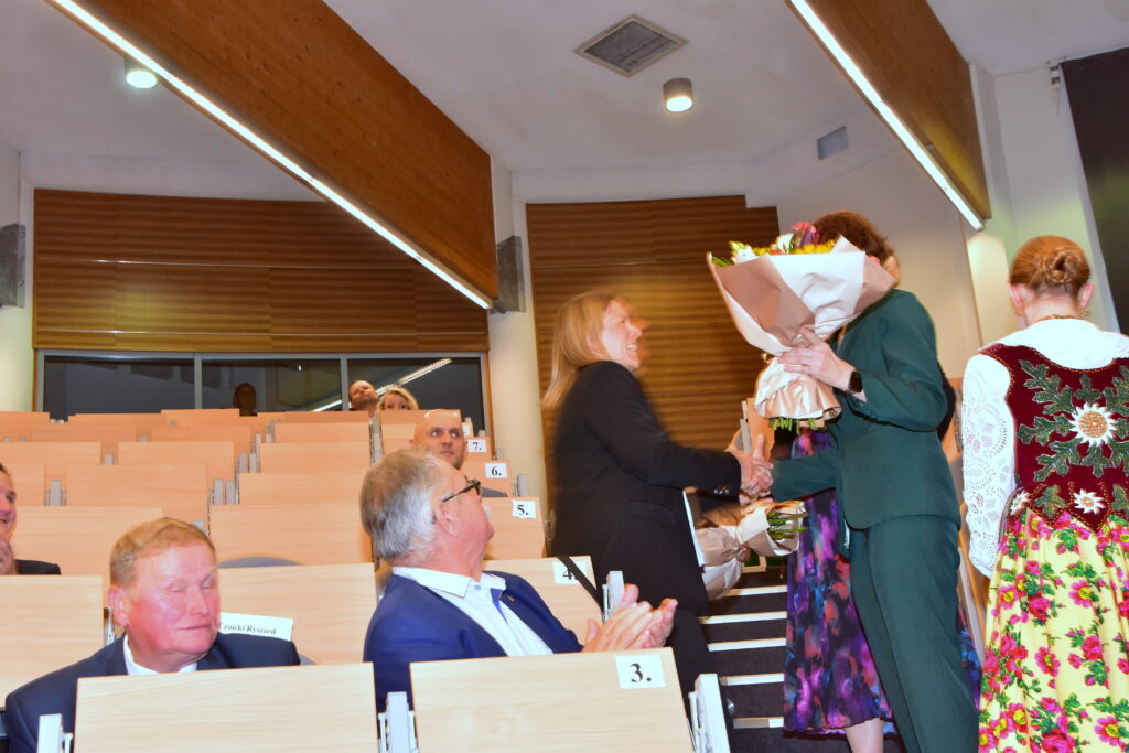Uroczystość zgromadziła licznych gości: przedstawicieli samorządów oraz instytucji współpracujących ze szkołą, którzy, składając listy gratulacyjne na ręce p.o. dyrektor Małgorzaty Rusinek, wyrażali słowa uznania i życzyli kontynuacji chlubnych tradycji.