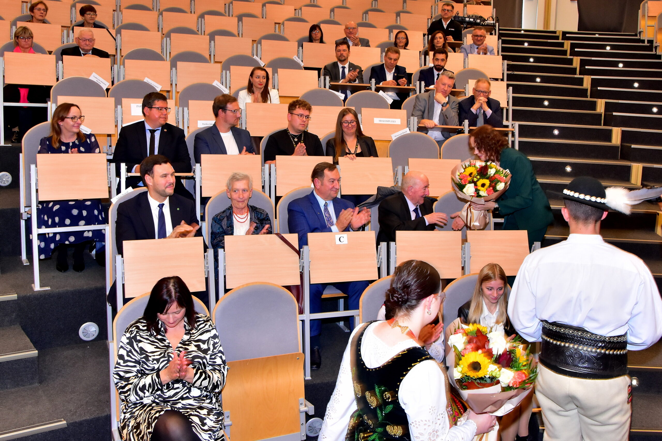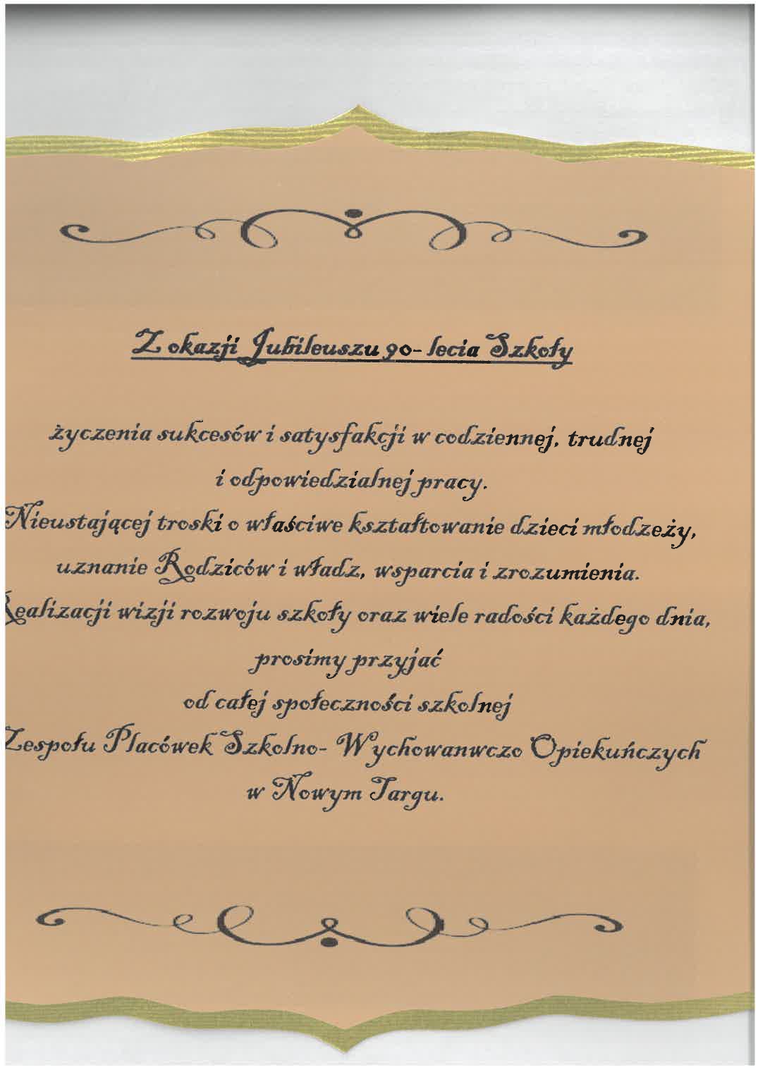 Uroczystość zgromadziła licznych gości: przedstawicieli samorządów oraz instytucji współpracujących ze szkołą, którzy, składając listy gratulacyjne na ręce p.o. dyrektor Małgorzaty Rusinek, wyrażali słowa uznania i życzyli kontynuacji chlubnych tradycji.